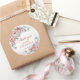 Blush floral eucalyptus gold frame baby shower classic round sticker