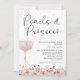 Blush Floral Glass Pearls Prosecco Bridal Shower Invitation