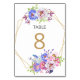 Guide your guests with elegance using this blush floral wedding table number card, featuring soft watercolor flowers in pink and blue with delicate greenery. Accented by a modern gold geometric frame and bold number design, this card is perfect for adding a romantic and stylish touch to your reception tables.