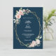 This blush floral navy simple all in one wedding invitation design features beautiful chic classic backgrounds of pastel pink and navy blue with simple modern typography and elegant calligraphy to set a sophisticated tone for any style of event. Each product is embellished with gorgeous blush pink roses and peach and ivory hydrangeas arranged with lush eucalyptus and greenery leaf details, along with timeless geometric gold frames for a luxurious look. Mix and match this coordinating collection for an effortless personalized dream wedding aesthetic for a wide range of casual to formal styles. For more coordinating designs, this design is also available in white and black. As with all of our design, if you have any questions or special requests please just ask.