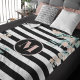 Blush Floral on Black and White Stripe Monogrammed Fleece Blanket