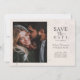 Announce your engagement with this wedding save-the-date featuring a simple, modern, and elegant design. Soft blush floral garden accents frame your personalized photo, while classic calligraphy script typography adds a timeless, classy touch. Perfect for couples seeking a refined yet contemporary look, this save-the-date creates a beautiful first impression for your wedding celebration.