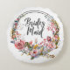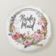 This round throw pillow features a blush floral wreath and “Brides Maid” in elegant script on a soft white background. A beautiful gift for bridesmaids or a lovely accent for bridal suites and getting-ready rooms. Part of the Blush Floral Wedding Collection.