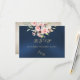 The Blush Floral & Wreath RSVP - Blue features the bride & grooms first initials and a blush pink floral bouquet on a blue background. The back has details for the recipient to fill out. Designed to coordinate with the "Floral & Foil Botanical Wreath" Wedding Collection. To change details, click «Personalize». To move the text or change the text size, font, or color click «Click to customize further» initials