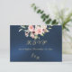 The Blush Floral & Wreath RSVP - Blue features the bride & grooms first initials and a blush pink floral bouquet on a blue background. The back has details for the recipient to fill out. Designed to coordinate with the "Floral & Foil Botanical Wreath" Wedding Collection. To change details, click «Personalize». To move the text or change the text size, font, or color click «Click to customize further» initials