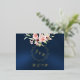 The Blush Floral & Wreath RSVP - Blue Foil Invitation Postcard features a botanical wreath, bride & grooms first initials in foil and a blush pink floral bouquet on a blue background. The back has details for the recipient to fill out. Designed to coordinate with the "Floral & Foil Botanical Wreath" Wedding Collection. To change details, click «Personalize». To move the text or change the text size, font, or color click «Click to customize further» initials