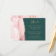 The left-hand edge of this elegant modern wedding details enclosure card features a blush pink watercolor agate border trimmed with faux gold glitter. The title appears in handwriting script, with customizable text below in gold-coloured copperplate font on an emerald green background. The reverse side features a matching blush and gold agate design.