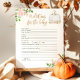 Blush gold Little pumpkin floral baby predictions card. "Little pumpkin is on the way" baby shower predictions for the baby card.