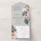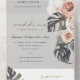 BLUSH GREY PEACH FLORAL MONSTRERA LEAF WEDDING ALL IN ONE INVITATION