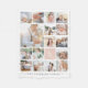 Customize this soft fleece blanket with 16 square photos arranged in a grid collage layout, with one large image and the remainder small. Your single initial monogram appears on a blush pink square at the lower right. Add your family name or custom caption along the bottom in chic grey.
