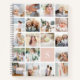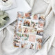 Customize this spiral notebook with 19 square photos arranged in a grid collage layout, with your single initial monogram on a blush pink square at the lower right. Back cover has tone on tone stripes in millennial pink.