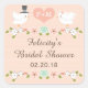 BLUSH MONOGRAMMED DOVE LOVE BIRDS BRIDAL SHOWER SQUARE STICKER