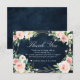 Blush Navy Dusty Blue Floral Botanical Wedding Thank You Card