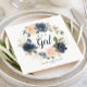 Blush pink and navy blue watercolor floral baby shower napkin.