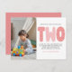 Modern, simple and elegant girl second birthday thank you postcard. Design featuring blush pink typography two , thank you message and a photo.