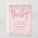 Introducing a chic and celebratory 30th birthday party invitation, perfect for marking this special milestone in style. The elegant design features a mix of silver glitter confetti, adding a touch of fun and festivity. At the top, "Thirty" is prominently displayed in bold calligraphy, setting the tone for an unforgettable celebration. The text combines script and simple modern fonts in white, creating a striking contrast against the vibrant pink background. The glitter continues on the back, adding an extra touch of sparkle to the overall design. This invitation is perfect for celebrating 30 years of life with flair. The background and font colours can be customized to fit your style. Elegant Rose Gold Glitter 30th Birthday Party Invitation Blush Pink Confetti Thirty Years Old. Please note the glitter is faux, with no foil or shimmer.