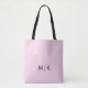 This modern tote bag design features a blush pink background, with your monogram or initials in bold black text for a look that is simple and stylish.
