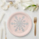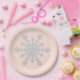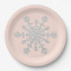 Blush Pink and Faux Glitter Silver Snowflake Paper Plate