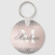 Elegant Silver Glitter and Faux Blush Pink Foil Monogram Keychain with a customizable calligraphy script name and bold monogram template. A cute and girly initial keychain that would make an adorable personalized gift for bridesmaids, birthdays, new home housewarming party, etc.