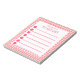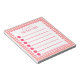 Keep track of all your important tasks with this stylish personalized notepad. The design features pink and white plaid pattern as background plus blank space with seven check circles and lines. The text is fully customizable.