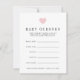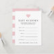 Let baby shower guests make their best guesses at baby girl's birthdate and time, weight and length! Place a stack at the entrance to the event, pass them around, or leave one at each place setting. Makes a fun keepsake for the mama-to-be, too, when compiled in a pretty box or binder. Design features a blush pink heart at the top with modern black lettering and a blush and white stripe pattern on the reverse side.