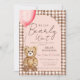Throw the sweetest We Can Bearly Wait girl baby shower with this adorable watercolor bear invitation. A soft ivory cream arch frames your shower details, while a cute teddy bear holding a pink balloon adds charm and sweetness. The backdrop features a chocolate brown gingham plaid pattern, giving the design a cozy and timeless feel.