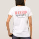 Elevate your beauty brand with this modern blush pink makeup artist employee T-shirt with logo and custom website, designed for ambitious MUAs building a standout brand. There is a pocket design on the front, and branding on the back of the T-shirt.