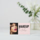 Make a flawless first impression with this Blush Pink Script Photo Makeup Business Card, designed for modern makeup artists and beauty professionals. Featuring a soft blush background, elegant script typography, and stylish social media icons, this card blends professionalism with feminine, on-brand style.