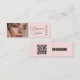Blush Pink Black Script Photo Makeup QR Social Mini Business Card