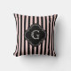 Blush Pink, Black Stripe Pattern Monogram Throw Pillow