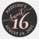 Blush Pink Black Sweet 16th Birthday Party Favour Classic Round Sticker