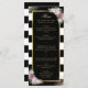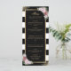 Elegant black and white striped floral wedding menu featuring blush pink flowers and greenery framing the wedding details inside a gold frame against a black and white background adorned with gold confetti. Matching items available.