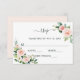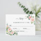 This wedding RSVP card features painted watercolor flowers in blush pink, white and green foliage. For more advanced customization of this design, Please click the "Customize further" link. Matching items are also available.