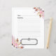 Blush pink boho feathers white recipe sheet insert