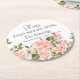 Blush Pink Botanical Wedding Script Round Paper Coaster