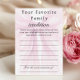 Create a meaningful keepsake at your baby shower with this “Favorite Family Tradition” activity card. Designed with a soft blush pink watercolor bow and elegant typography, it invites guests to share sweet traditions from their childhood—perfect for inspiring new memories for your growing family.