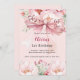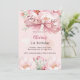 A girly blush pink background, decorated with a large pink bow and pink flowers. Text: She's a Cute One. Personalize and add a name and party details.