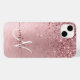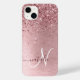 Blush Pink Brushed Metal Glitter Monogram Name Case-Mate iPhone Case