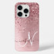 Blush Pink Brushed Metal Glitter Monogram Name Case-Mate iPhone Case