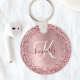 Blush Pink Brushed Metal Glitter Monogram Name Keychain