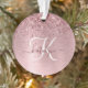 Blush Pink Brushed Metal Glitter Monogram Name Ornament