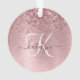 Easily personalize this trendy chic ornament design featuring pretty blush pink sparkling glitter on a blush pink brushed metallic background.