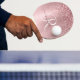 Easily personalize this trendy chic pingpong paddle design featuring pretty blush pink sparkling glitter on a blush pink brushed metallic background.