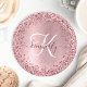 Blush Pink Brushed Metal Glitter Monogram Name Round Paper Coaster