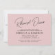 This simple wedding Rehearsal Dinner invitation features elegant script text on a light blush background.