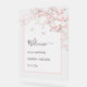 Blush pink cherry blossom floral transparent wedding welcome reception board.