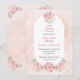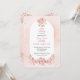 Celebrate your baby girl with this elegant Blush Floral Christian Baby Shower Invitation featuring a beautifully balanced front and back design. The front showcases a soft blush pink background with a classic white oval centerpiece framed by delicate floral arrangements at the top and bottom. Your event details are displayed inside the oval, creating a timeless and graceful look.