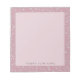 Features glam crystal confetti on a blush pink background. Personalize the notepad with your own name or text.