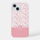 Blush Pink Damask Pattern Monogram iPhone 14 Case