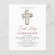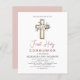 Celebrate a sacred milestone with our Blush Pink First Holy Communion Rose Greenery Invitation. Adorned with delicate blush pink roses and lush greenery, this invitation captures the essence of purity and reverence. Each detail is meticulously crafted to evoke a sense of tranquillity and spiritual grace, perfect for honouring this significant occasion. Whether it's a formal ceremony or an intimate gathering, the soft pastel hues and intricate floral details create a charming backdrop for commemorating this special moment. Customize the text to include essential details such as the date, time, and location, ensuring a warm and heartfelt invitation. With its elegant design and timeless appeal, our Blush Pink First Holy Communion Rose Greenery Invitation promises to create cherished memories for the guest of honour and their loved ones. Invite friends and family to share in the blessings of this sacred journey with an invitation that radiates love, faith, and grace.